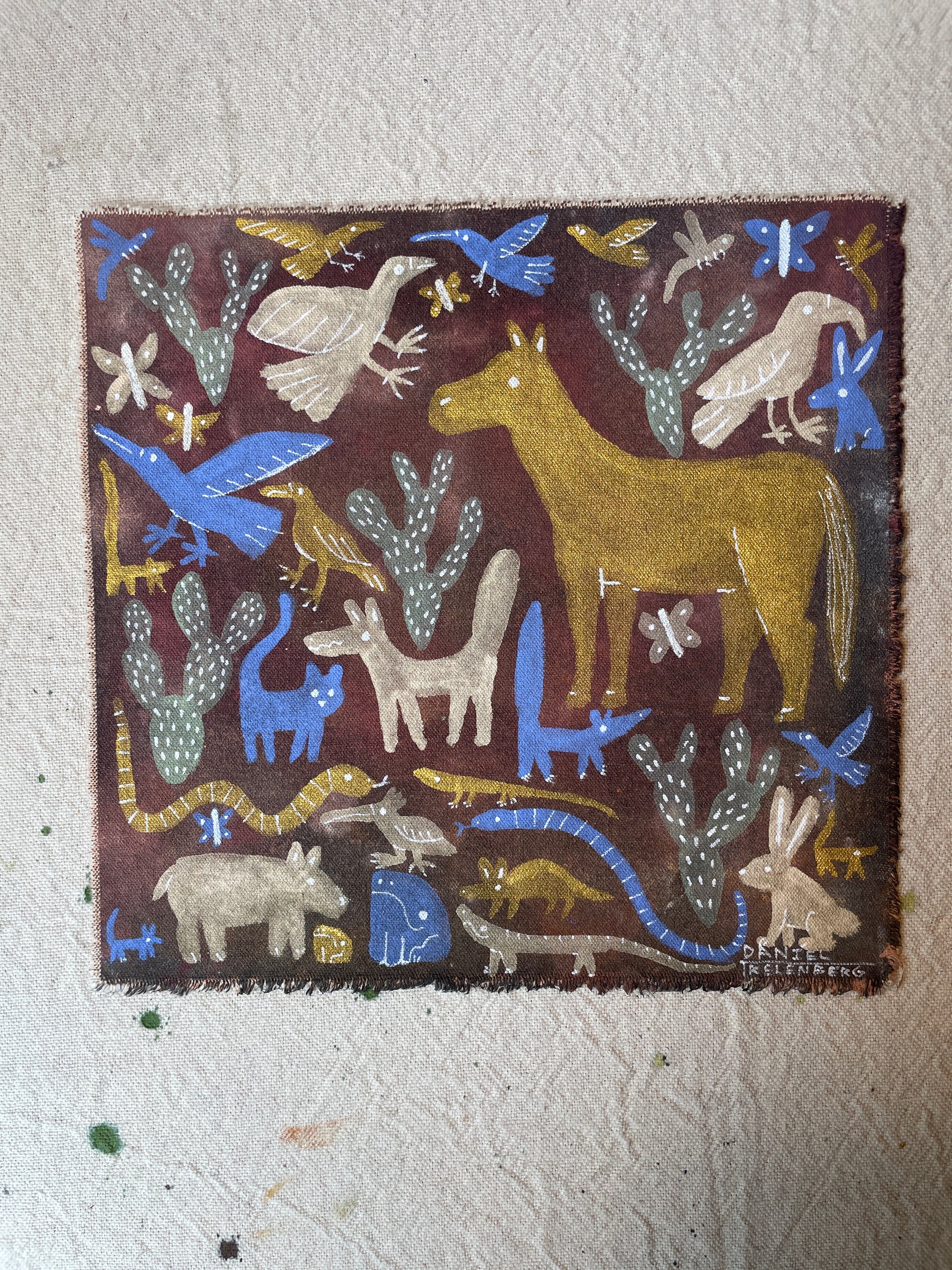 Acrylic on raw un stretched canvas